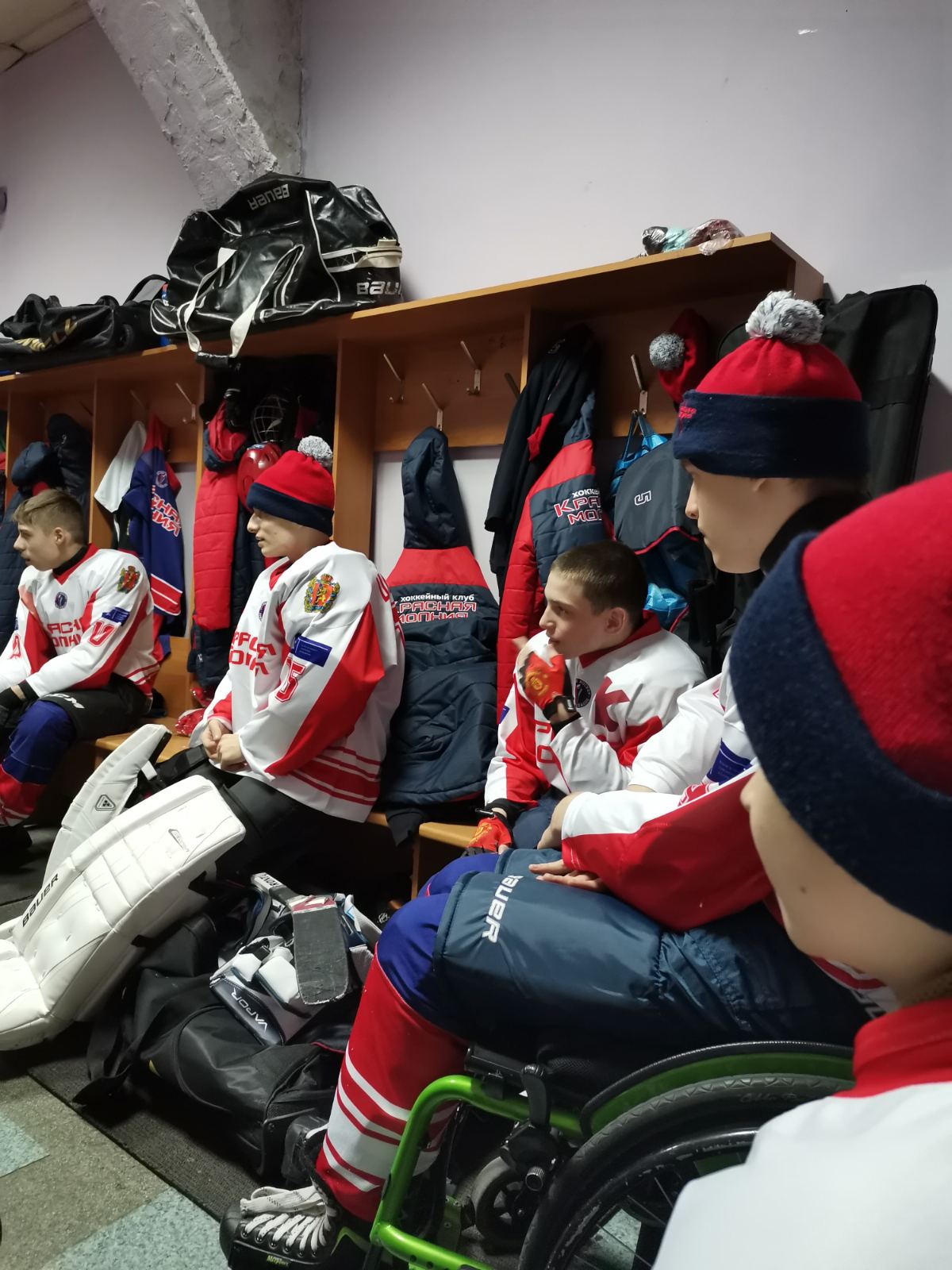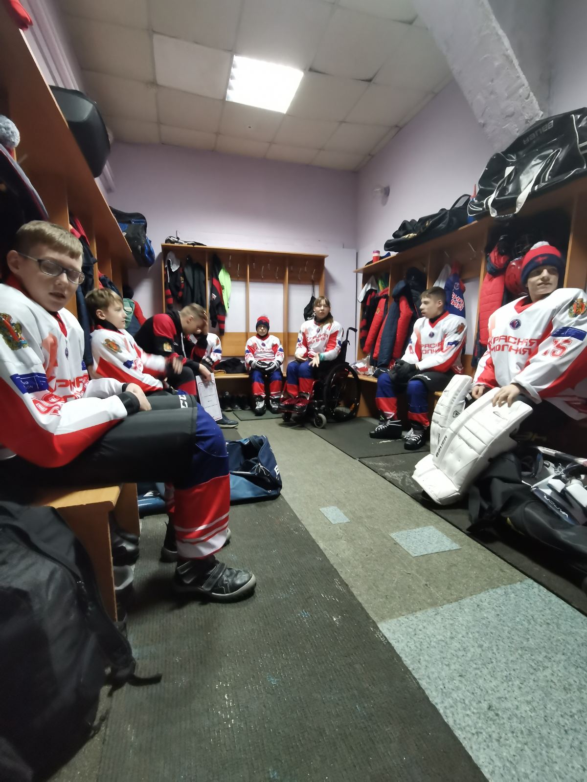 Тренировки детской следж-хоккейной команды «Красная молния», а также участие в спортивных мероприятиях проводятся в рамках реализации проекта «Достойная смена» при финансовой поддержке «Фонда президентских грантов»