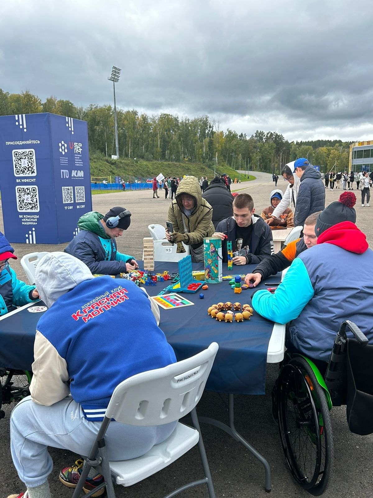 Наша команда не осталась в стороне. Мы стали частью площадки «Спорт для всех», рассказывали про адаптивные виды спорта, играли в настолки, в виаре знакомились со следж-хоккеем, рассказывали о наших проектах, приглашали ребят на открытые тренировки по следж-хоккею, кибериграм, попробовать себя в виаре и в настольных играх!
