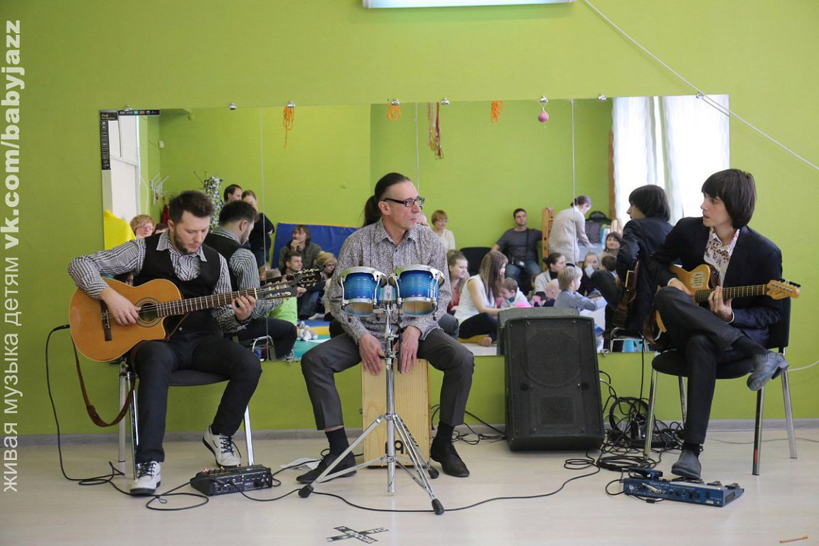 Baby Jazz - это концерты живой музыки для будущих мам, родителей и малышей 0+, один из самых популярных видов досуга у мам. В Красноярске первый концерт состоялся 28 ноября. С февраля этого года проект Динары Хафизовой пришел к нам в театральную студию. Во время концерта малыши свободно передвигаются по пространству зала, могут рисовать, играть, ползать, а еще попробовать себя настоящими музыкантами и подыграть на бубнах, маракасах и бубенцах.