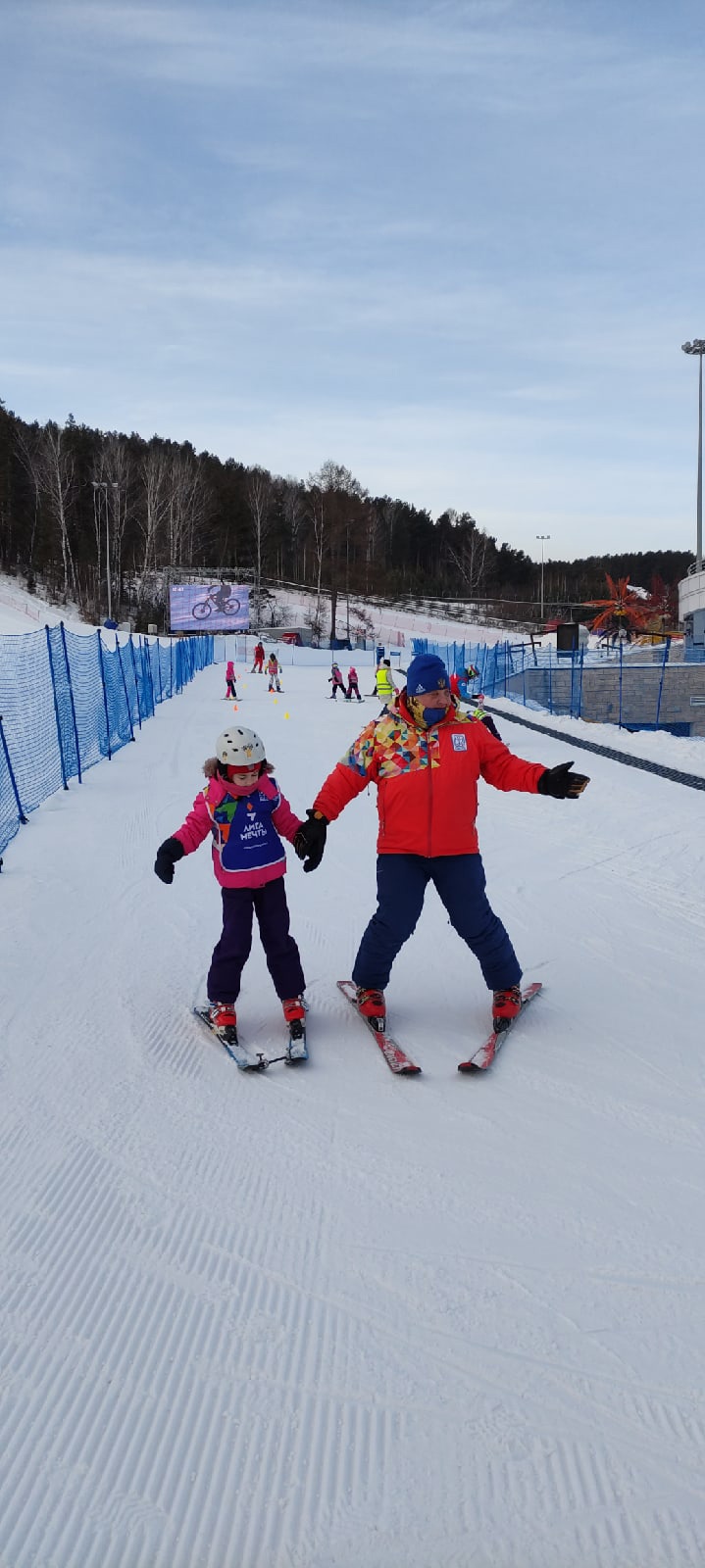Вика Виктория: Сегодня открыли наш горнолыжный сезон!!!! Первое занятие удалось!!!! Настя помнит движения и держится гораздо увереннее!!! Благодарим организаторов программы Лига Мечты, "Лыжи мечты" Красноярск нашего любимого инструктора Добренко и отдельное спасибо Elena за такую возможность!!!!
