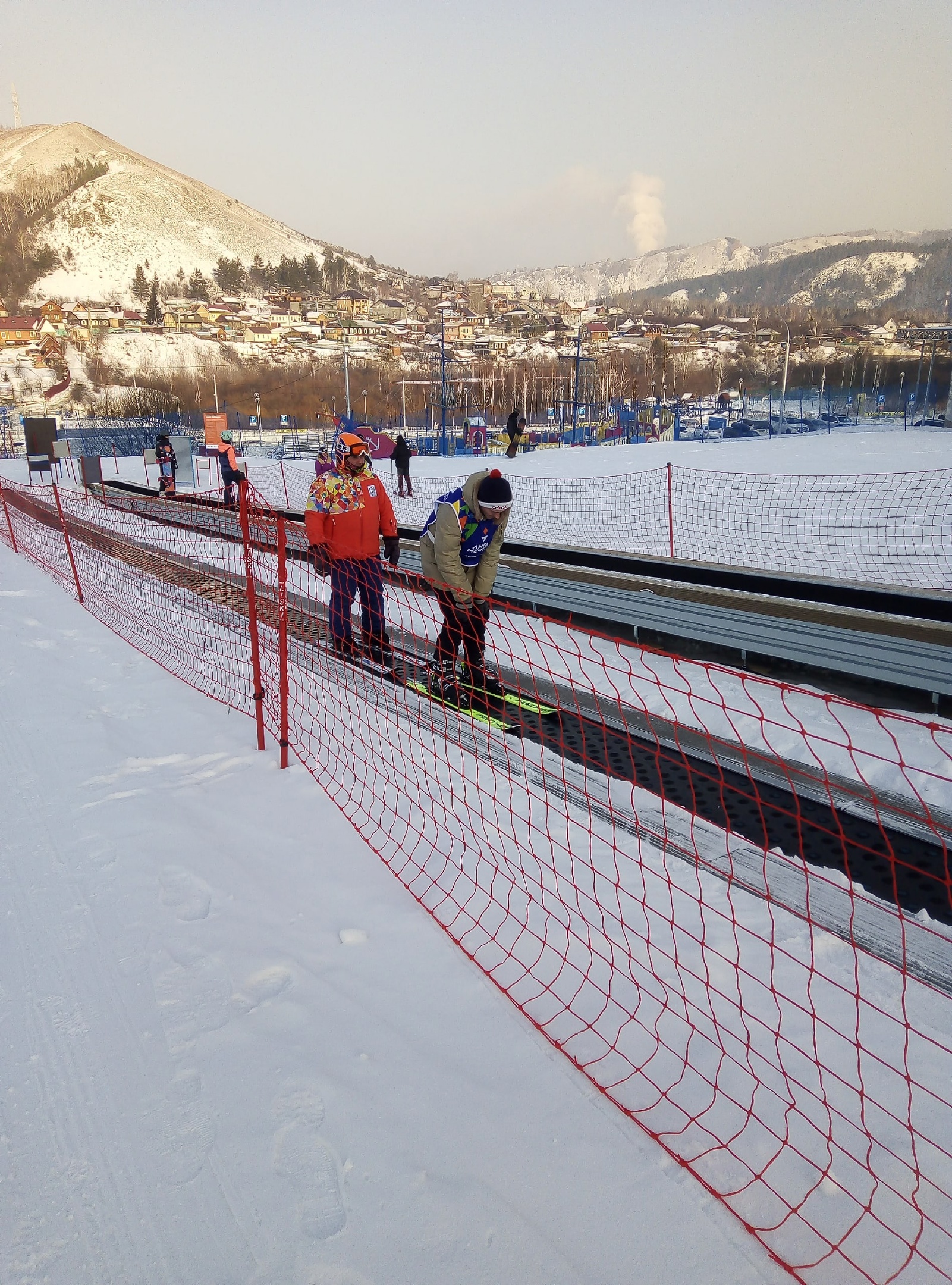 А учебный склон в другом месте и он длиннее, а это значит мне бегать Туда-сюда больше и для меня тоже есть польза)))